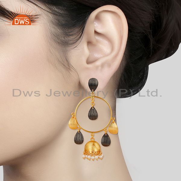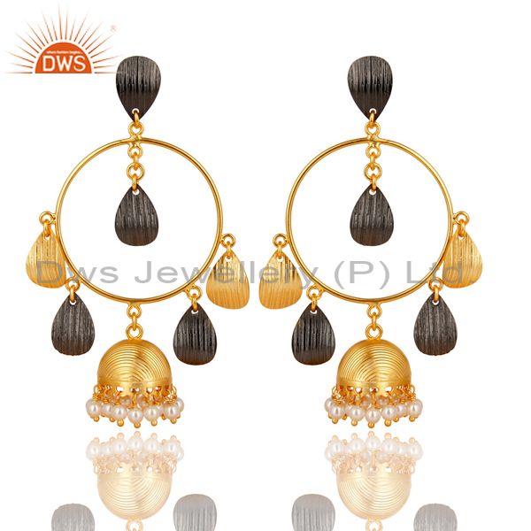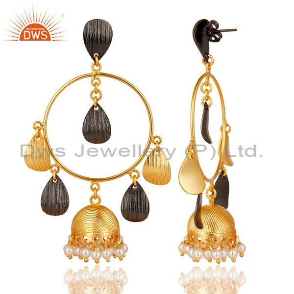 14K Yellow Gold Plated Traditional Handmade Round Pearl Jhumka Brass Earrings
