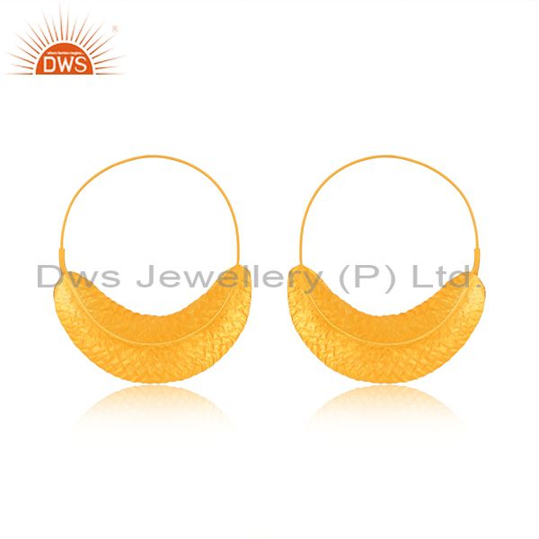 18K Brass Gold Handmade Abstract Design Hoop Style Earrings
