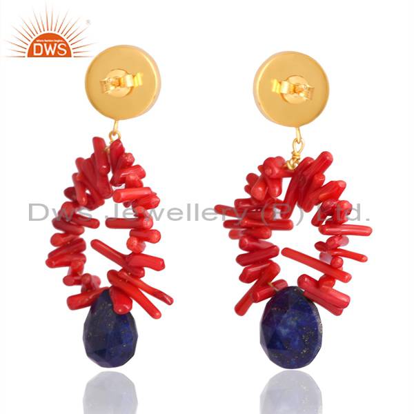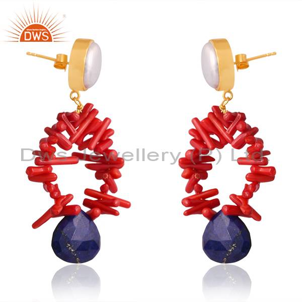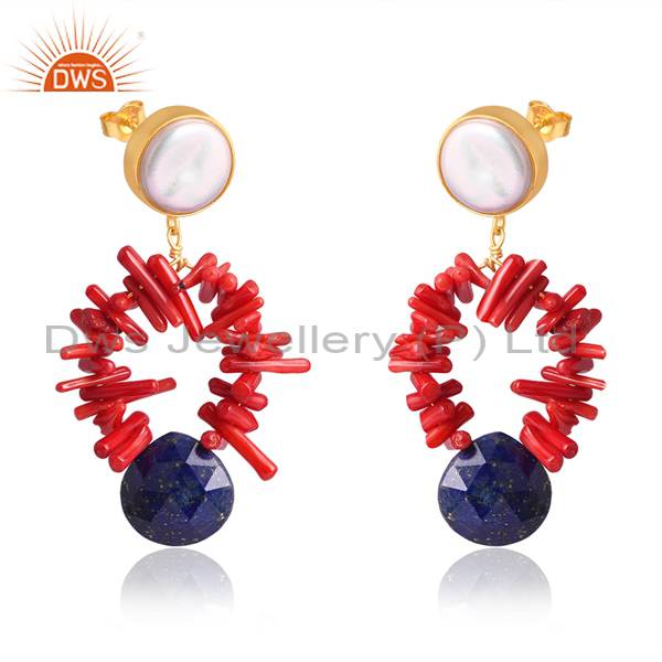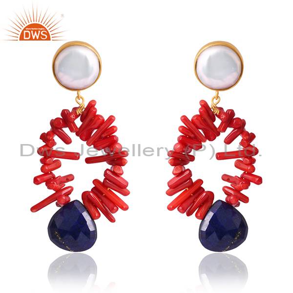 18K Gold & Sterling Silver Earrings Pearls, Lapis & Coral