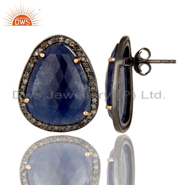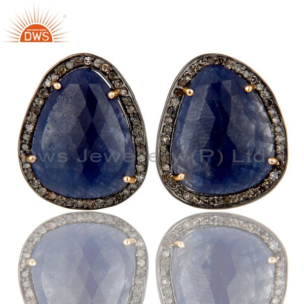 18K Gold 925 Sterling Silver Pave Diamond & Blue Sapphire Prong Setting Earrings
