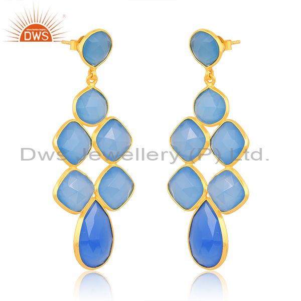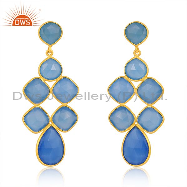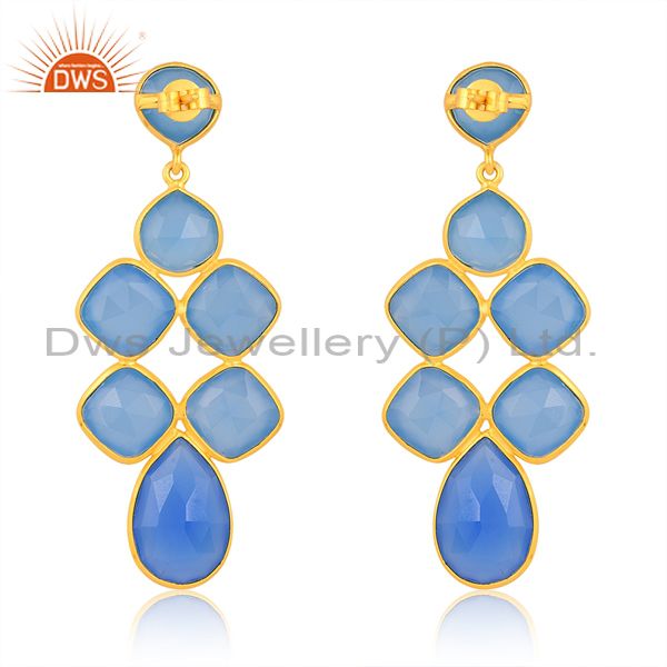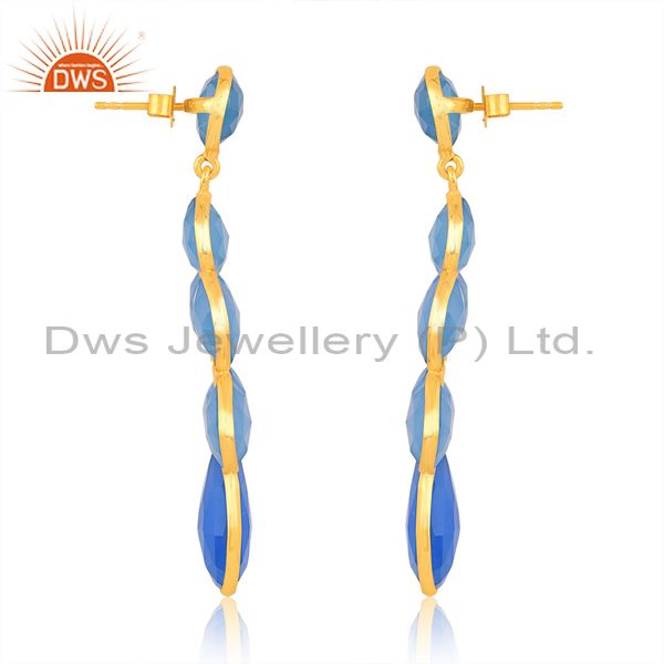 18K Gold Blue Chalcedony Sterling Silver Earring