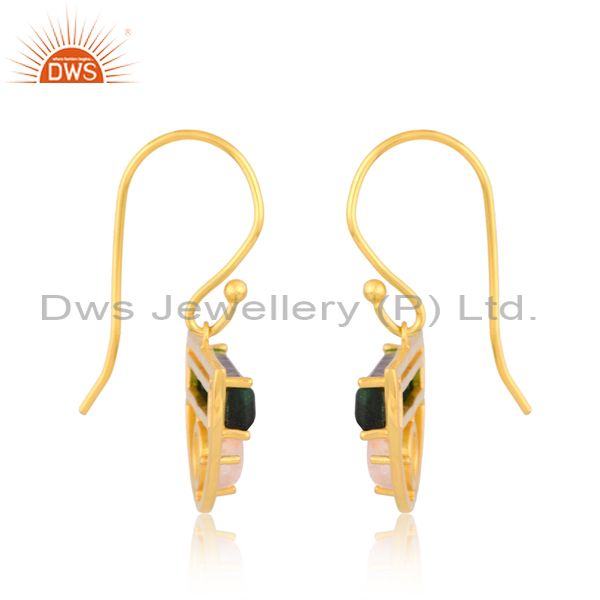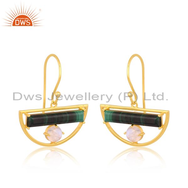 18K Gold Brass Earring With Malachite & Rainbow Moonstone