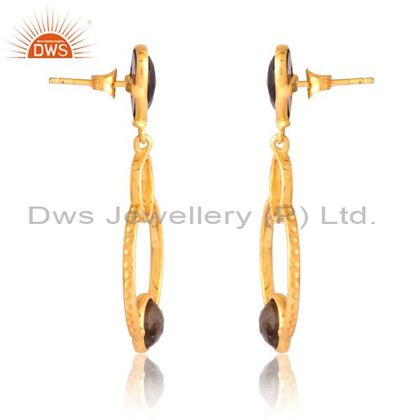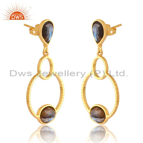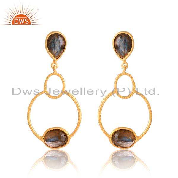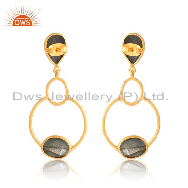 18K Gold Brass Earrings With Labradorite Rose Cut Ovals