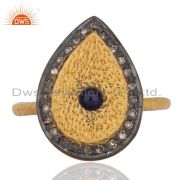 18K Gold Over 925 Sterling Silver Blue Sapphire Pave Diamond Drop Earrings
