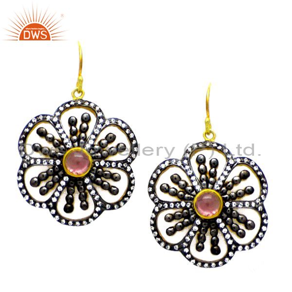 18K Gold Over Sterling Silver Cz And Tourmaline Antique Designer Dangle Earrings
