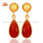 18K Gold Over Sterling Silver Faceted Red Onyx Gemstone Bezel-Set Drop Earrings