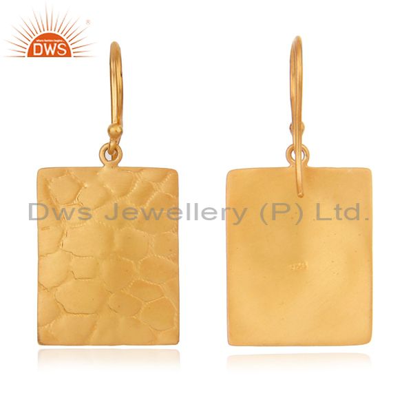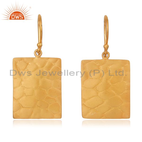 18K Gold Over Sterling Silver Hammered Textured Flat Hook Earrings Made In India