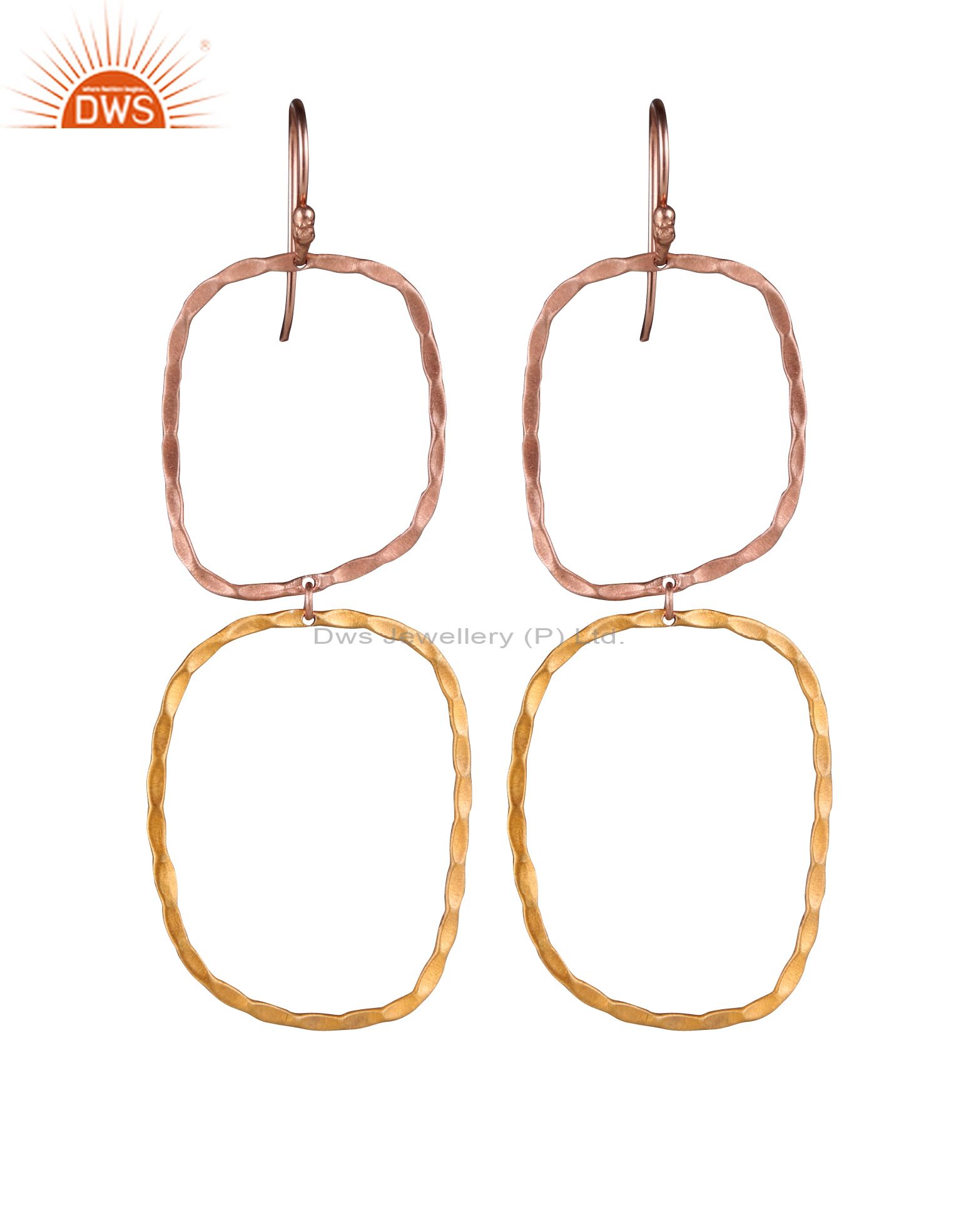 18K Gold Over Sterling Silver Hand Hammered Open Circle Dangle Earrings