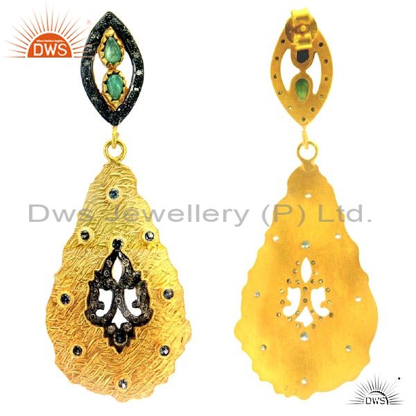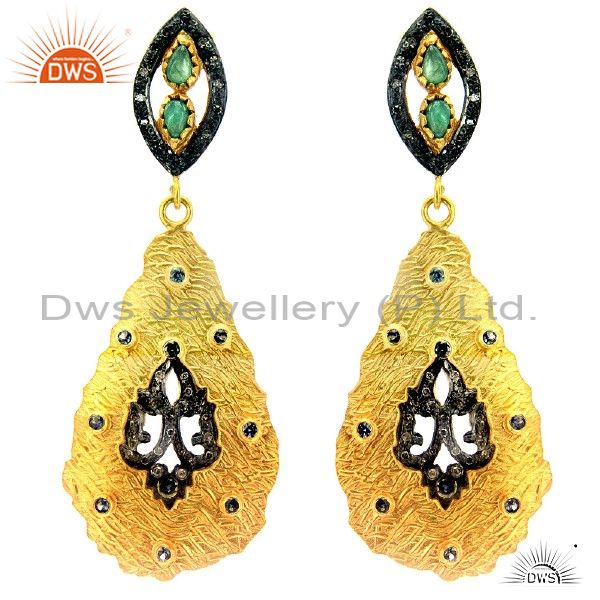 18K Gold Over Sterling Silver Pave Diamond And Emerald Teardrop Earrings