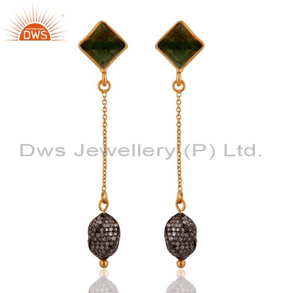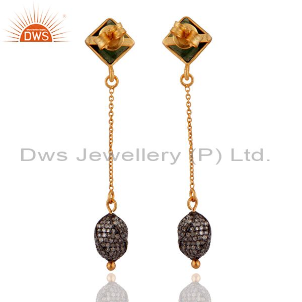 18K Gold Over Sterling Silver Pave Diamond Bead And Tourmaline Dangle Earrings
