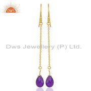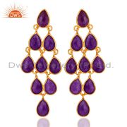 18K Gold Over Sterling Silver Purple Chalcedony Gemstone Chandelier Earrings
