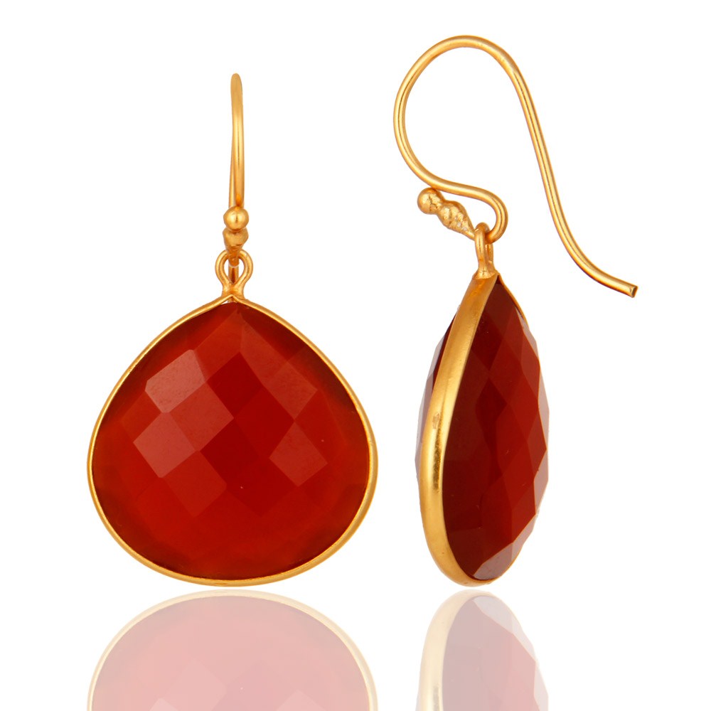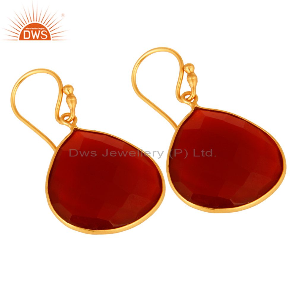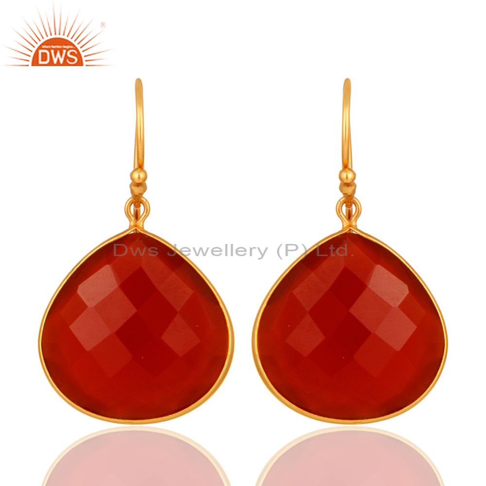 18K Gold Over Sterling Silver Red Onyx Gemstone Faceted Drop Earrings