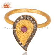 18K Gold Over Sterling Silver Ruby Pave Diamond Teardrop Stud Earrings