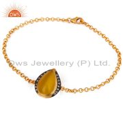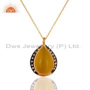18K Gold Over Sterling Silver Yellow Moonstone And Cz Gemstone Drop Earrings