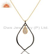 18K Gold Plated & Oxidized 925 Sterling Silver Rainbow Moonstone Drops Earrings