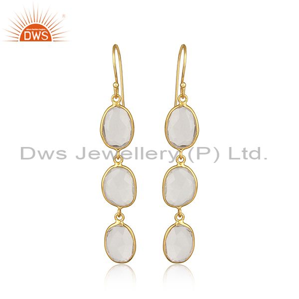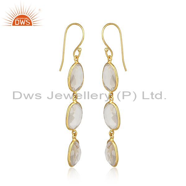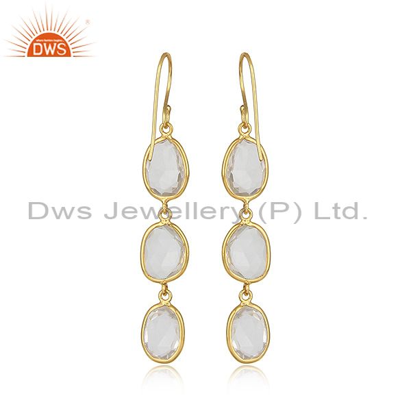 18K Gold Plated 925 Silver Crystal Quartz Dangle Handmade Earring