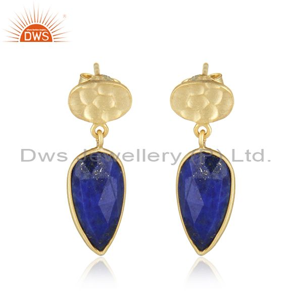 18k Gold Plated 925 Silver Lapis Lazuli Gemstone Girls Earring Jewelry
