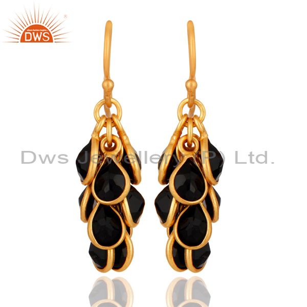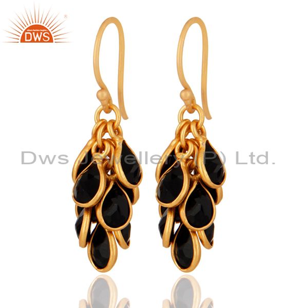 18K Gold Plated 925 Sterling Silver Black Onyx Gemstone Chandelier Earrings