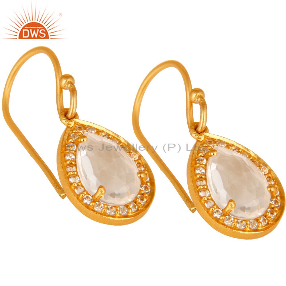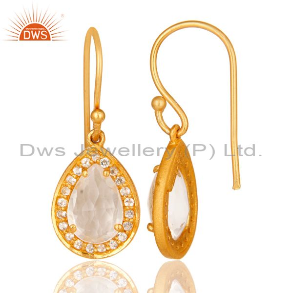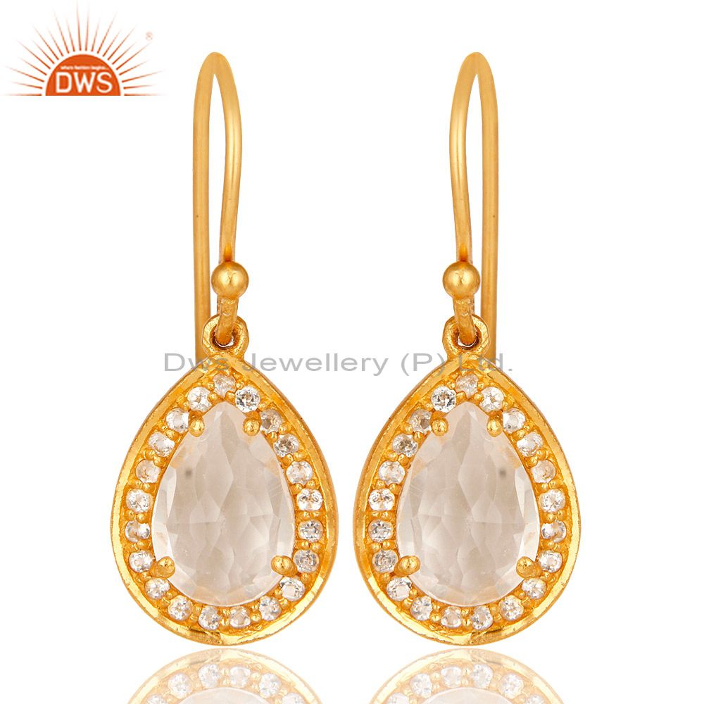 18K Gold Plated 925 Sterling Silver Crystal Quartz & White Topaz Drops Earrings