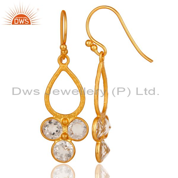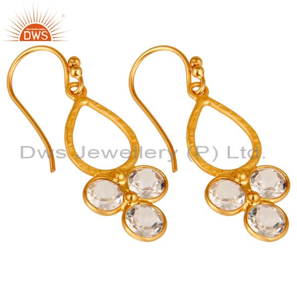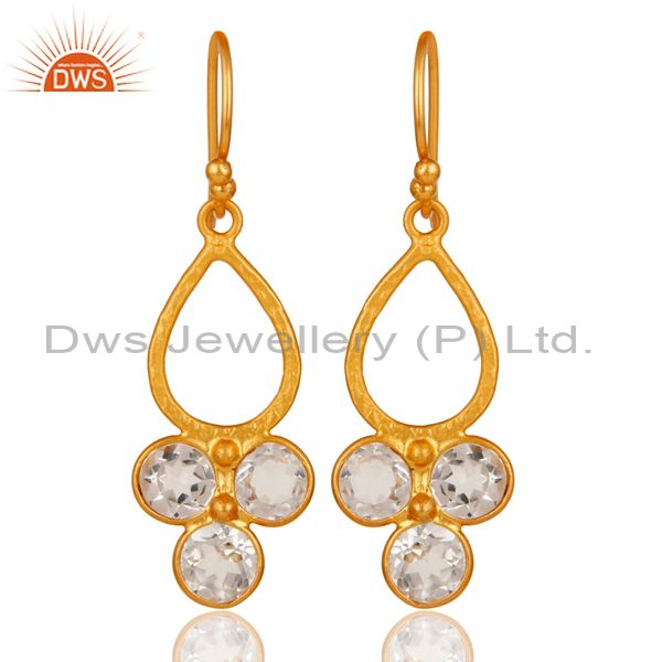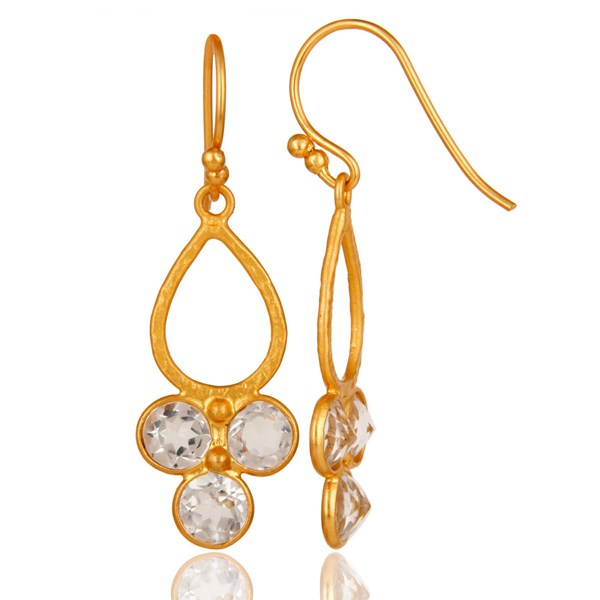 18K Gold Plated 925 Sterling Silver Crystal Quartz Dangle Earrings Jewelry