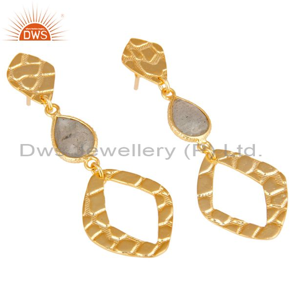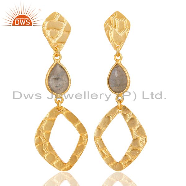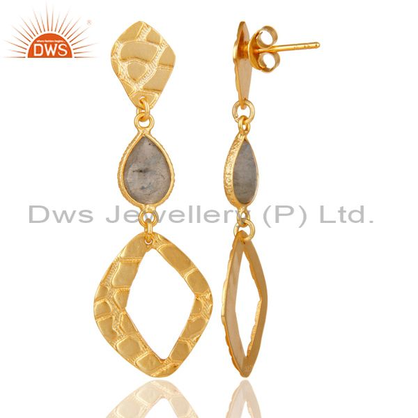 18K Gold Plated 925 Sterling Silver Handmade Art Design Labradorite Drop Earring