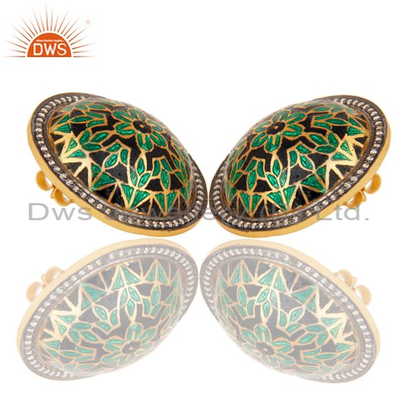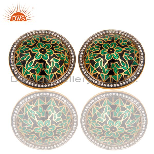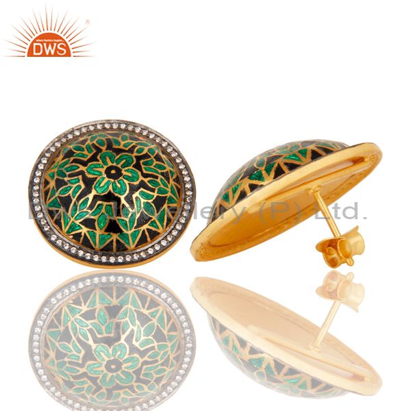 18K Gold Plated 925 Sterling Silver Handmade Art White Zirconia Enamel Earring