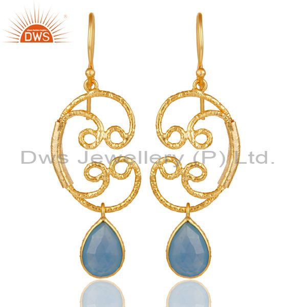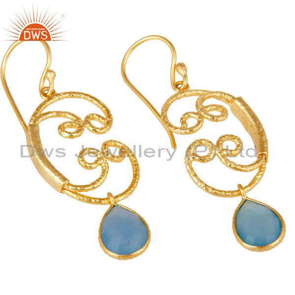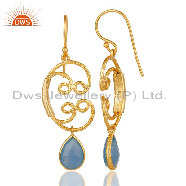 18k Gold Plated 925 Sterling Silver Handmade Bazel Set Chalcedony Drops Earrings