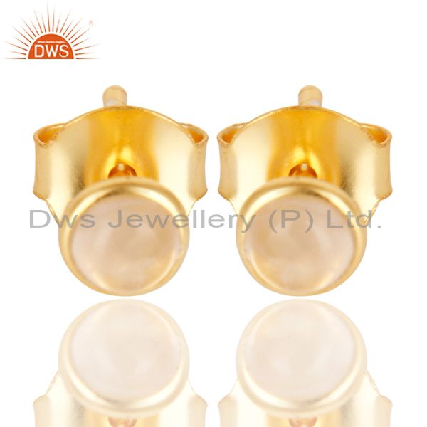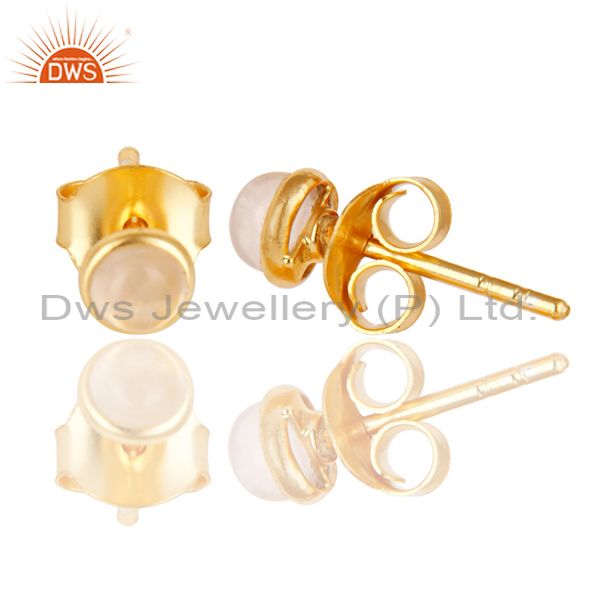 18K Gold Plated 925 Sterling Silver Handmade Rose Quartz Studs Earrings Jewelery