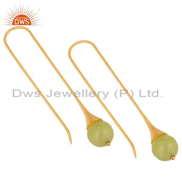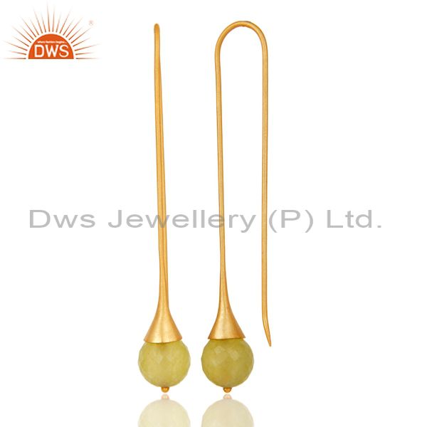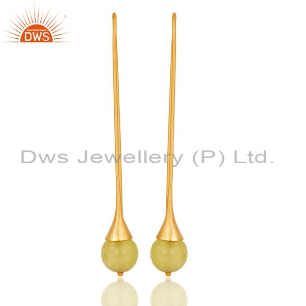 18K Gold Plated 925 Sterling Silver Handmade Yellow Chalcedony Dangle Earrings