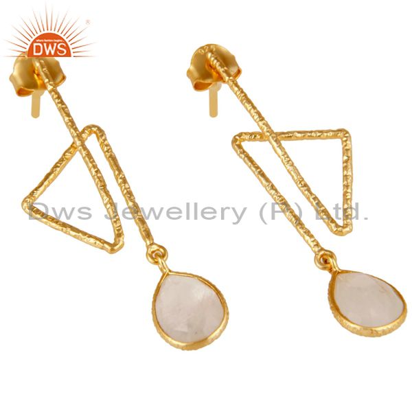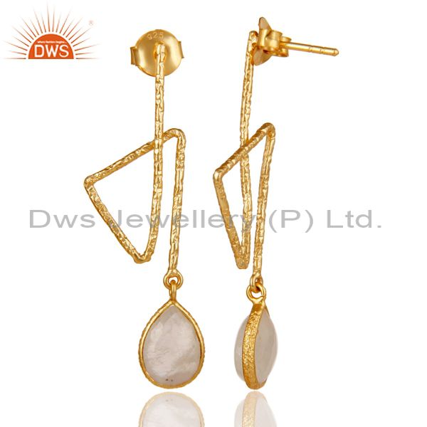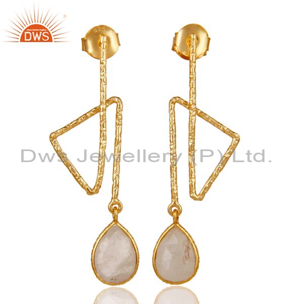 18K Gold Plated 925 Sterling Silver Handmade Zig Zag Style Moonstone Earrings