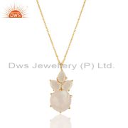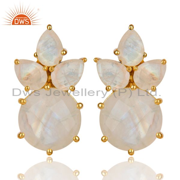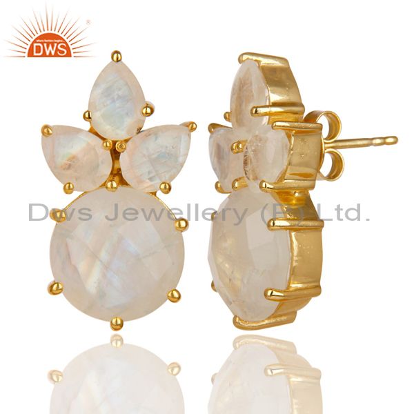 18K Gold Plated 925 Sterling Silver Rainbow Moonstone Prong Set Studs Earrings