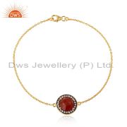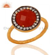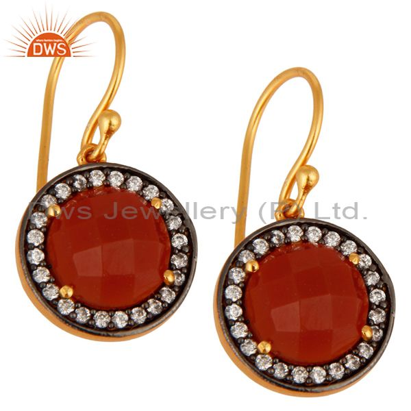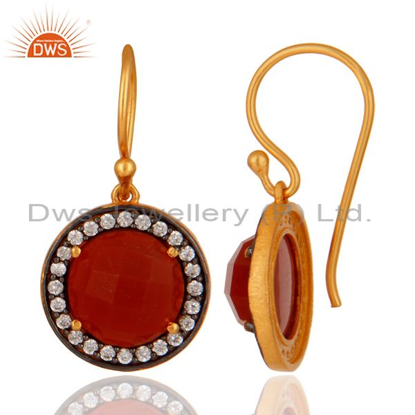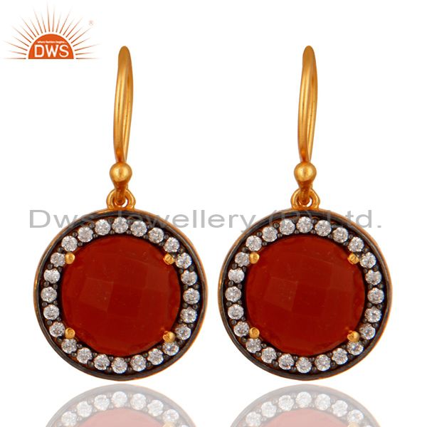 18K Gold Plated 925 Sterling Silver Red Onyx Gemstone Earring With White Zircon