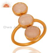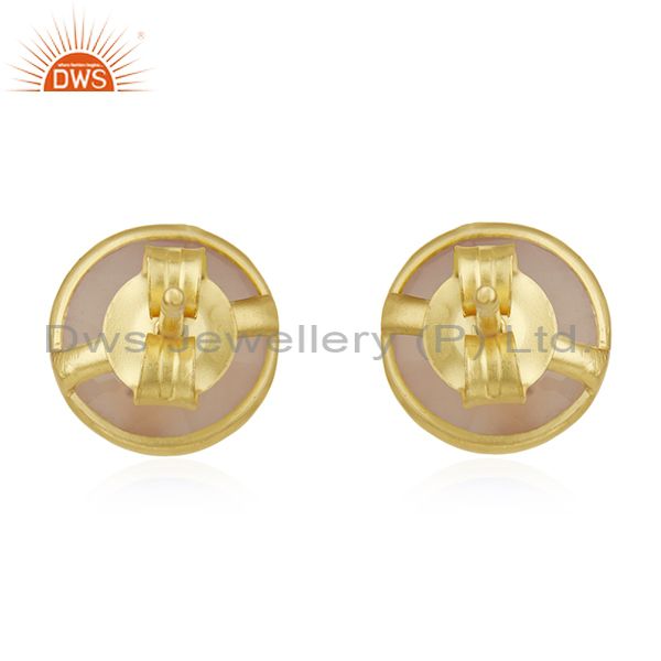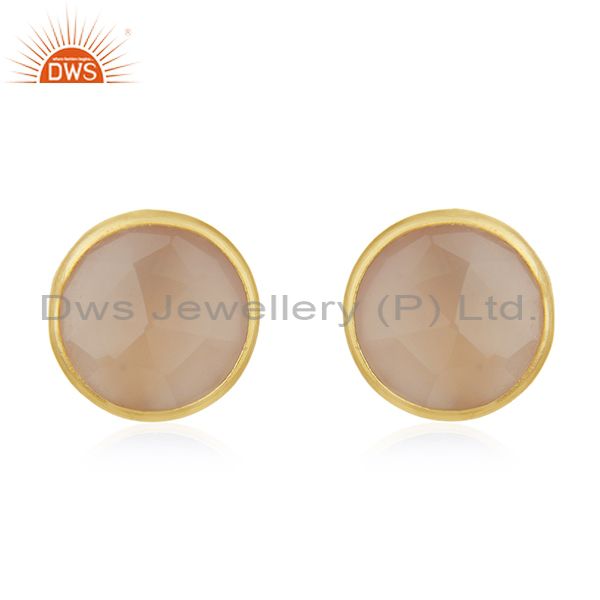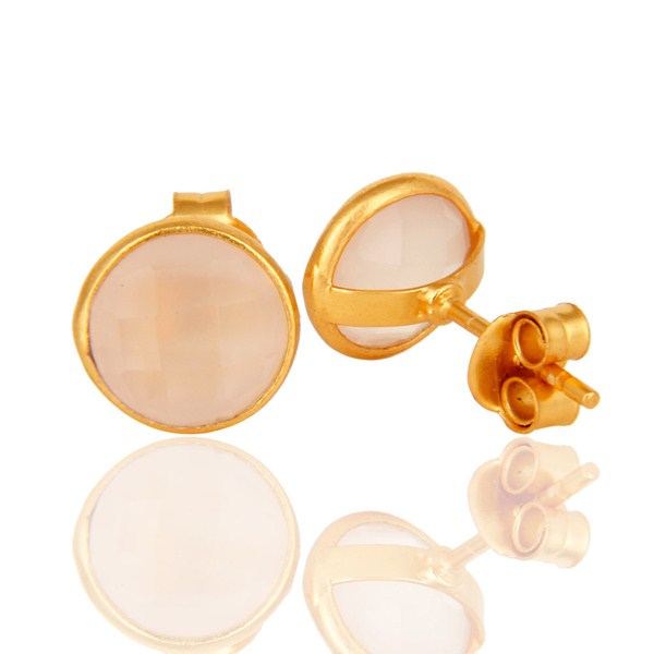 18K Gold Plated 925 Sterling Silver Round Cut Chalcedony Stud Earring