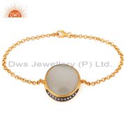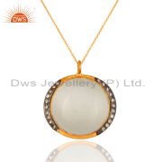 18K Gold Plated 925 Sterling Silver White Moonstone Gemstone Earrings With Cz