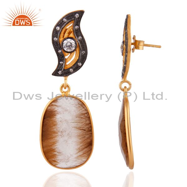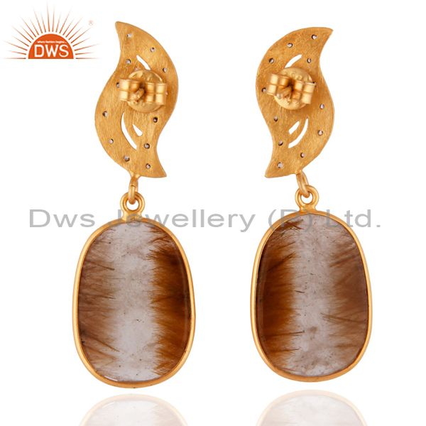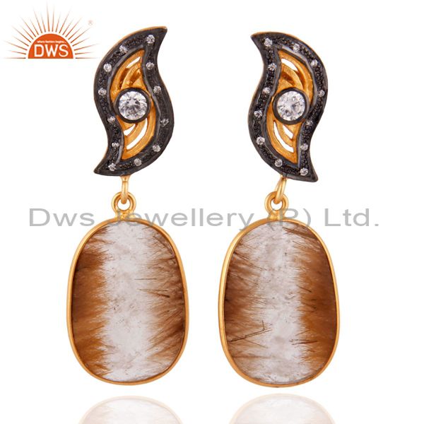 18K Gold Plated 925 Sterling Silver White Zircon & Rutile Quartz Dangle Earrings