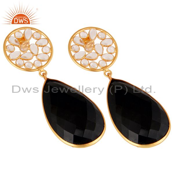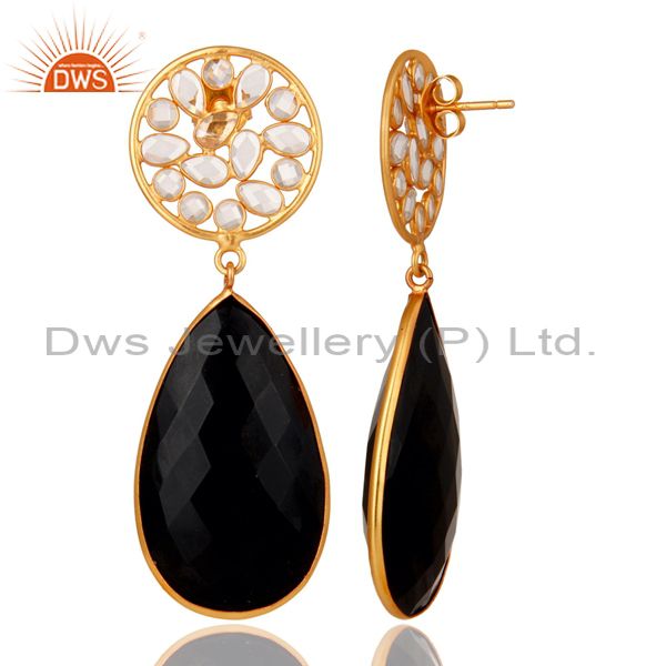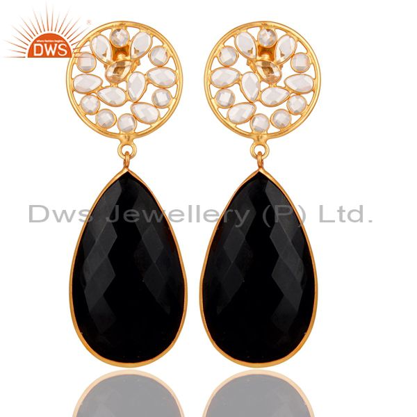18K Gold Plated Black Onyx And Cz Sterling Silver Handmade Stud Drop Earring