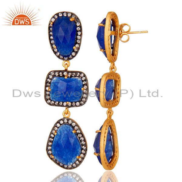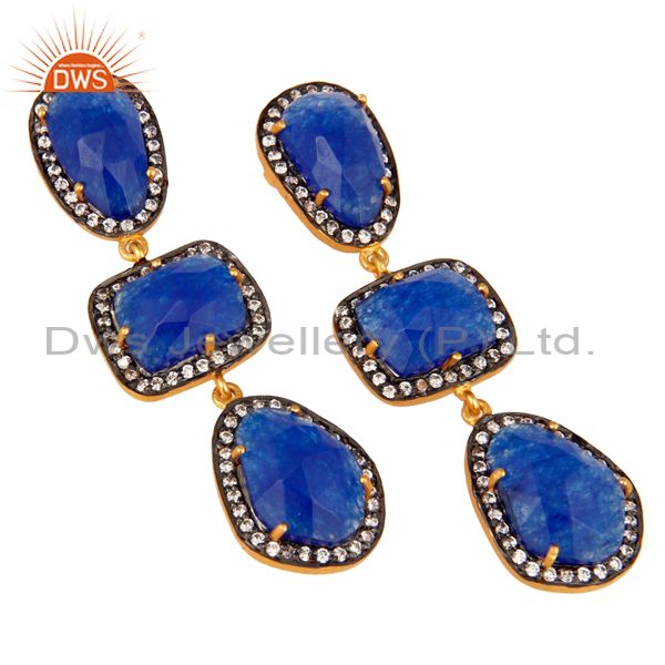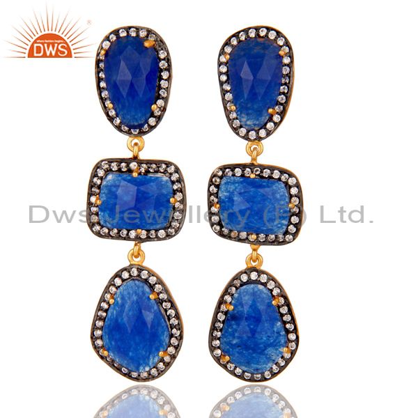 18K Gold Plated Blue Aventurine And White Zircon Dangle Drop Earring