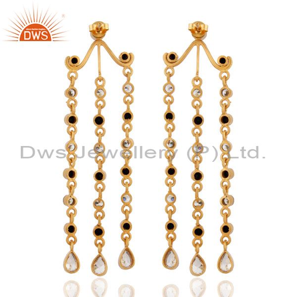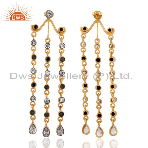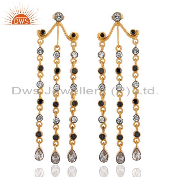 18K Gold Plated Cubic Zircon Earrings Black & White Elegant Chandelier Earrings