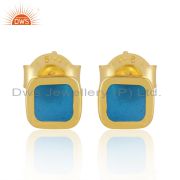 18k Gold Plated Designer 925 Silver Blue Enamel Stud Earrings Jewelry