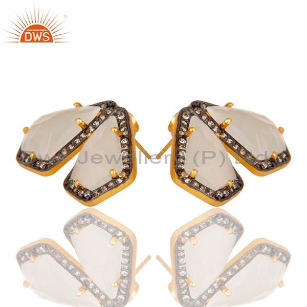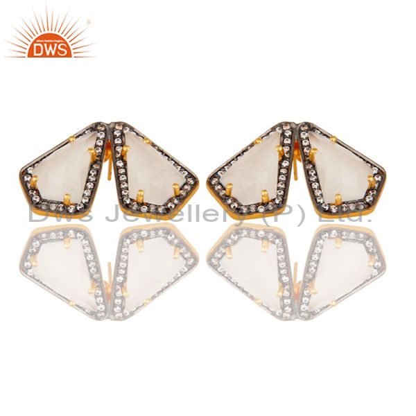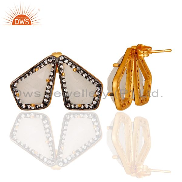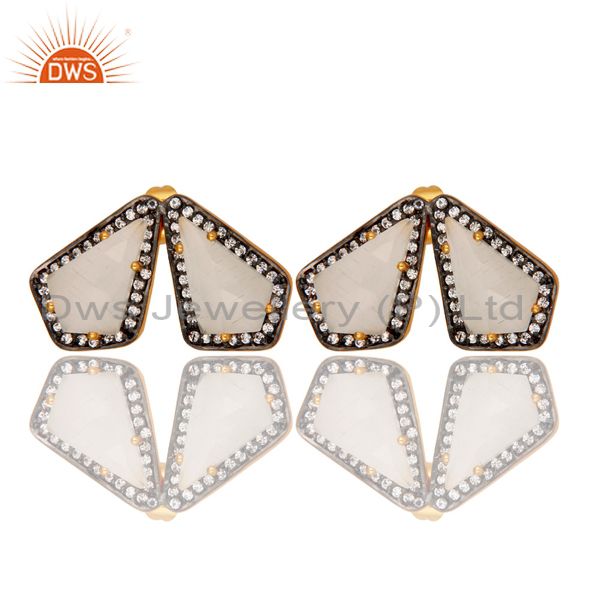 18K Gold Plated Designer Brass Earrings With Moonstone & White Zircon