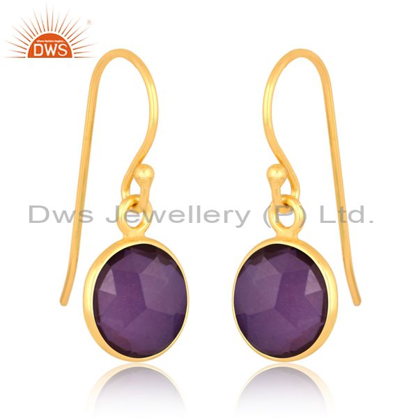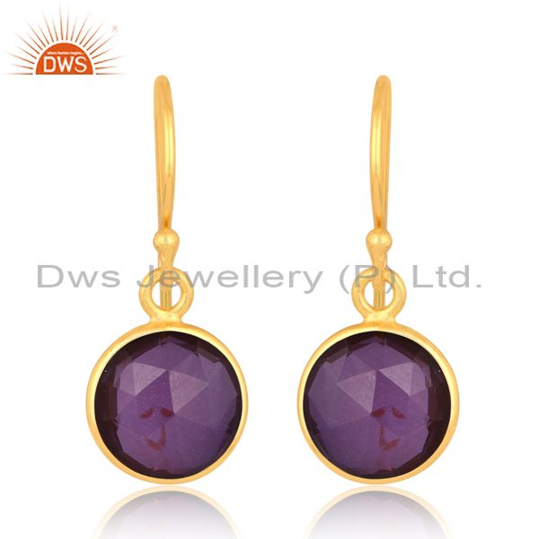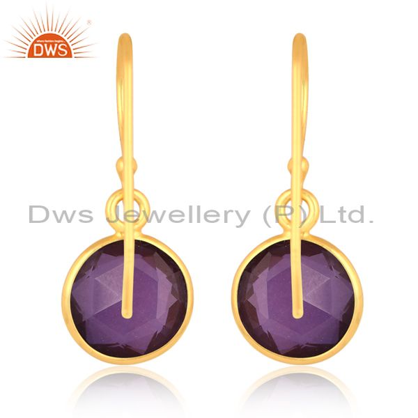 18K Gold Plated Earrings With Doublet Amethyst Gem