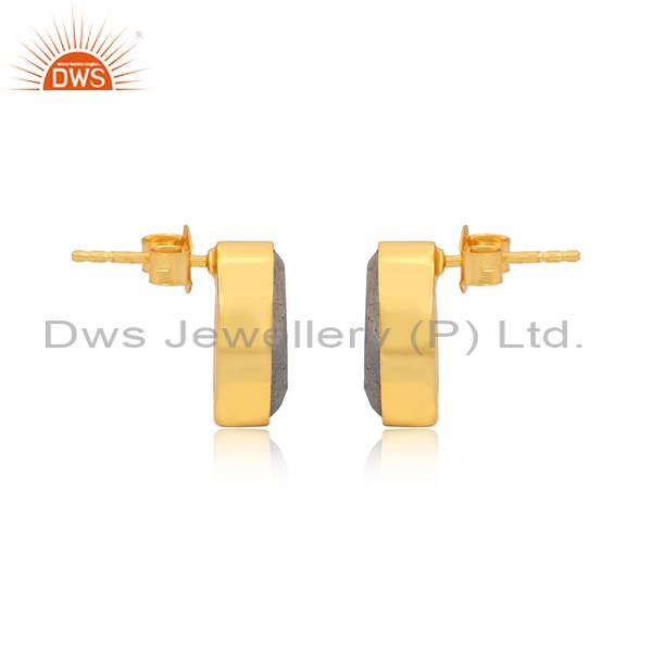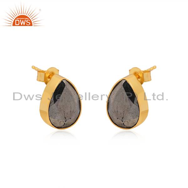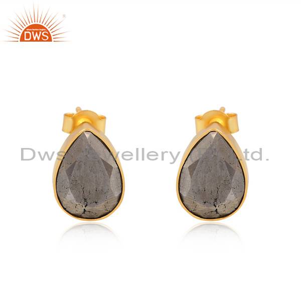 18K Gold Plated Flat Pear Cut Pyrite Studs Earrings