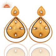 18K Gold Plated Hammered 925 Sterling Silver Crystal Polki Dangle Earrings