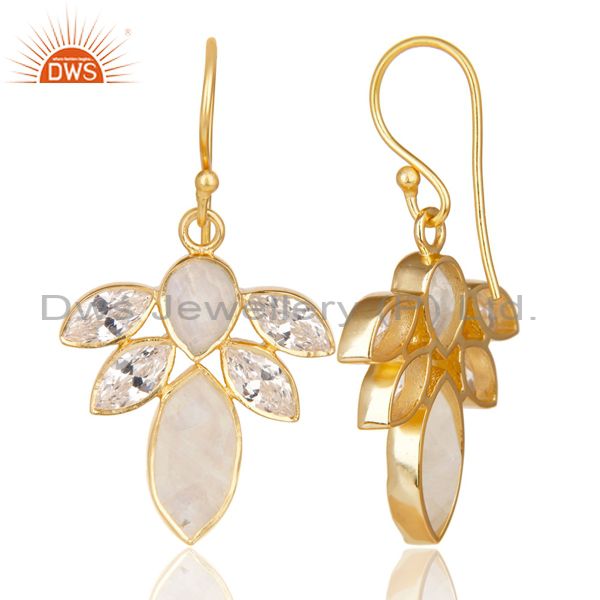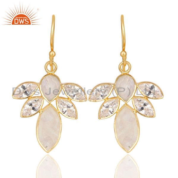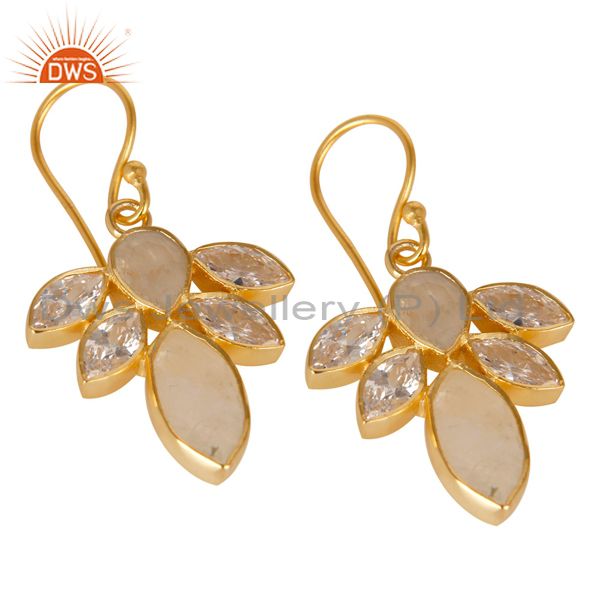 18K Gold Plated Handmade Rainbow Moonstone & White Zircon Drops Earring