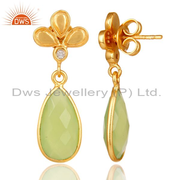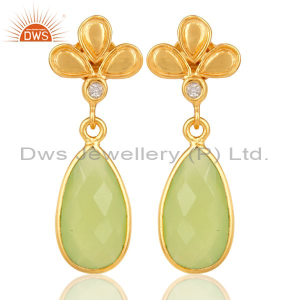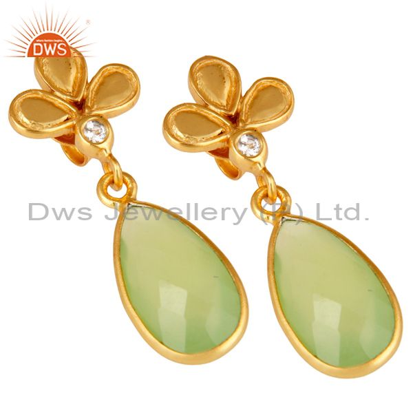 18K Gold Plated Prehnite Chalcedony White Topaz Sterling Silver Dangle Earring