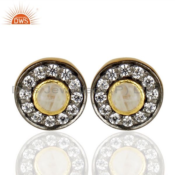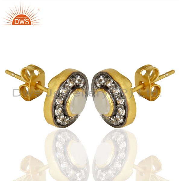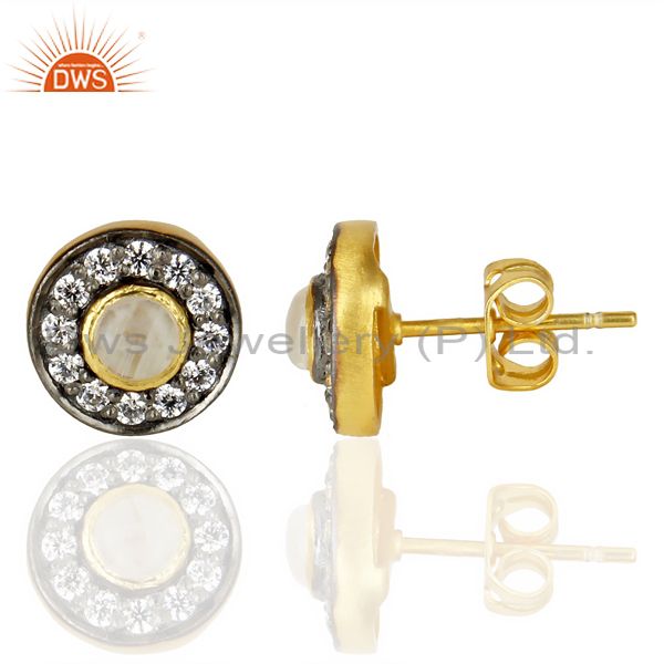 18k Gold Plated Rainbow Moonstone And Zircon Stud Brass Earrings