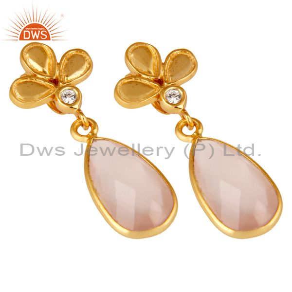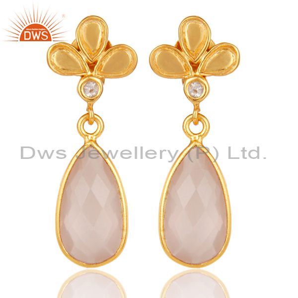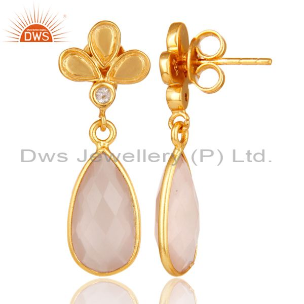 18K Gold Plated Rose Chalcedony and White Topaz Sterling Silver Dangle Earring