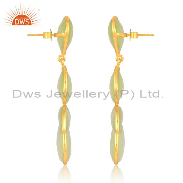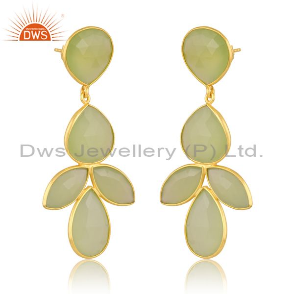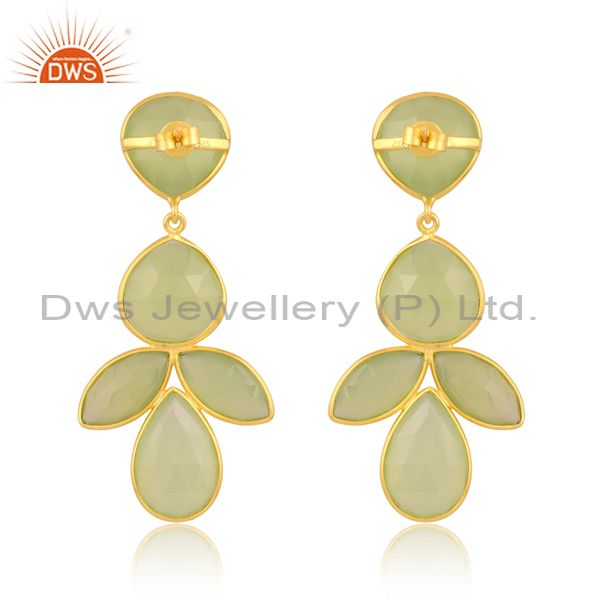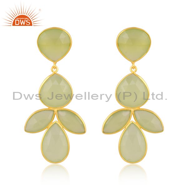 18K Gold Plated Silver Earring With Prehnite Chalcedony