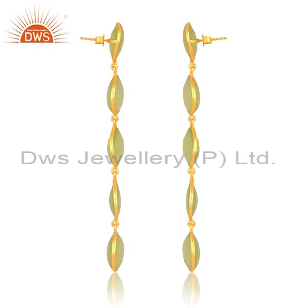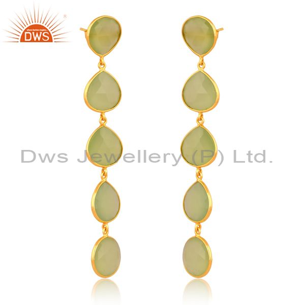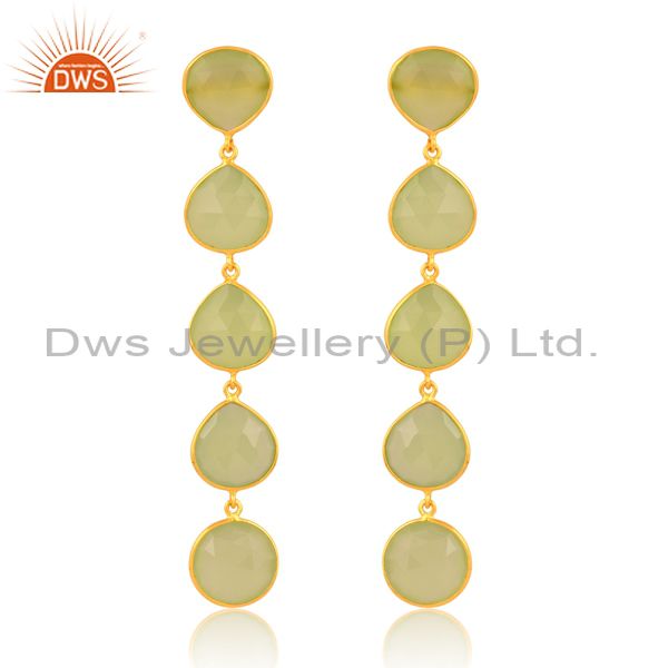 18K Gold Plated Silver Ring Prehnite Chalcedony Studded