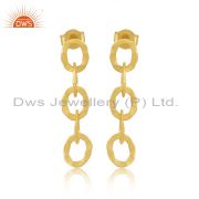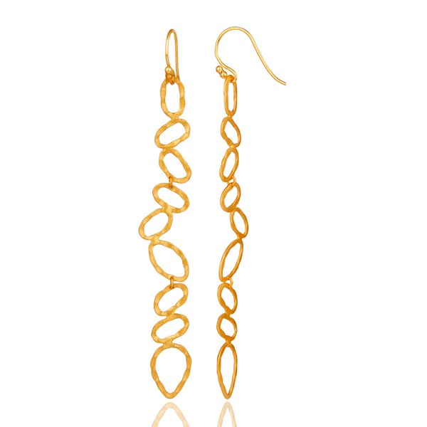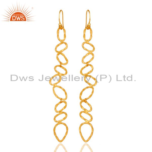 18K Gold Plated Solid Sterling Silver Hammered Dangle Earrings
